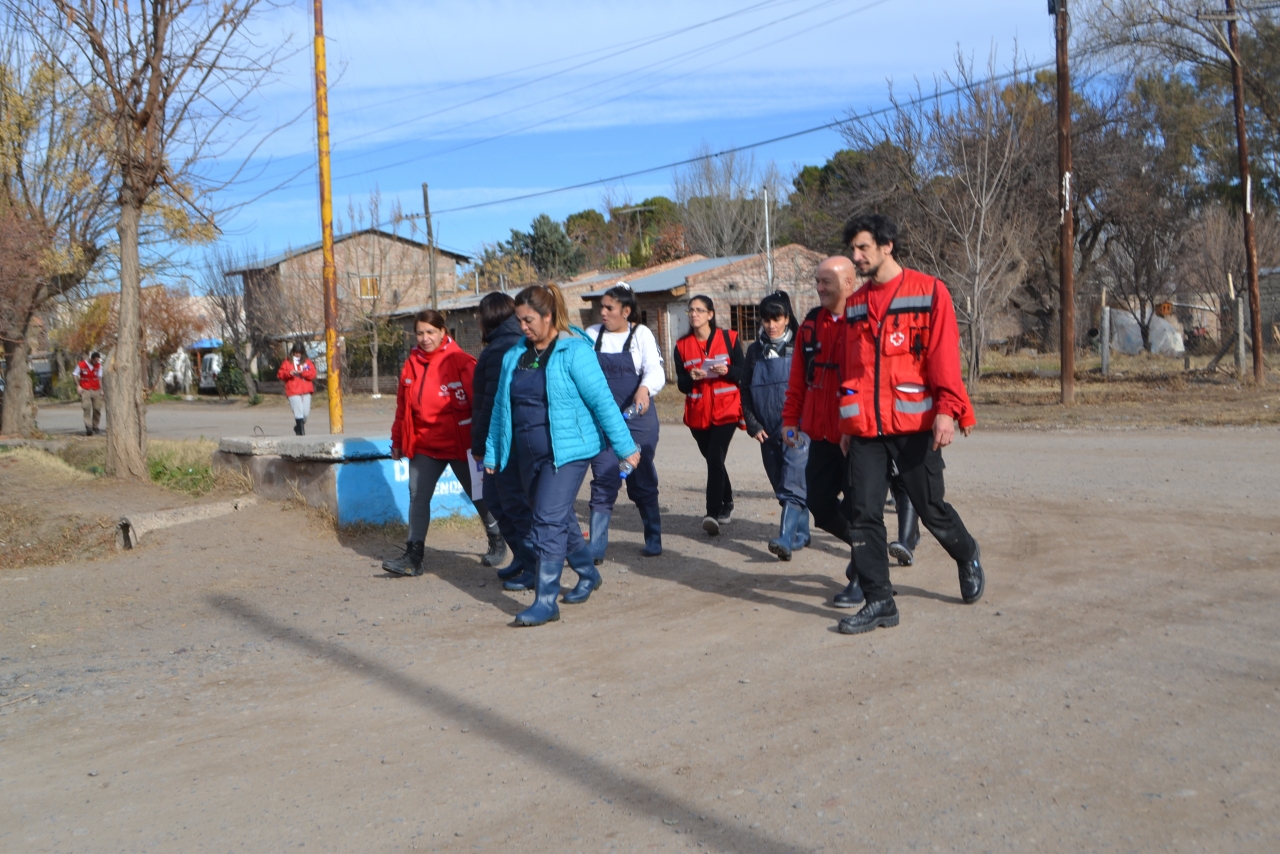 Trabajamos en conjunto desde Defensa Civil de la Provincia, con Recuersos Hidricos, AIC, Bomberos Voluntarios de Centenario y la Cruz Roja que continua con su trabajo Comunitario.
